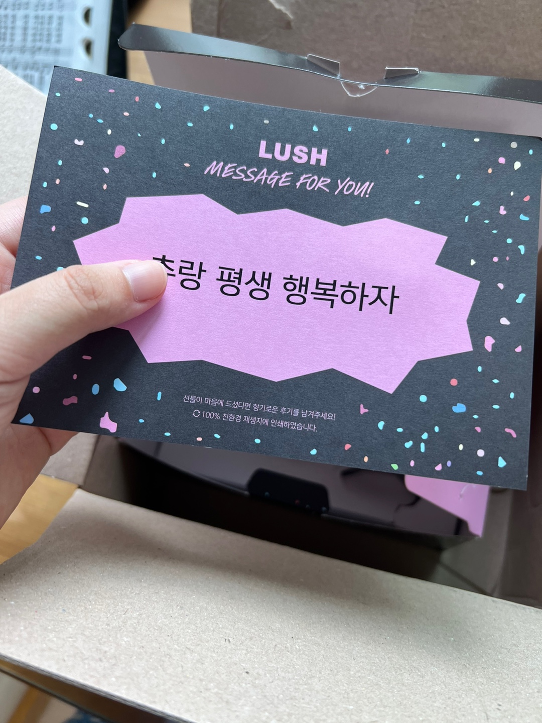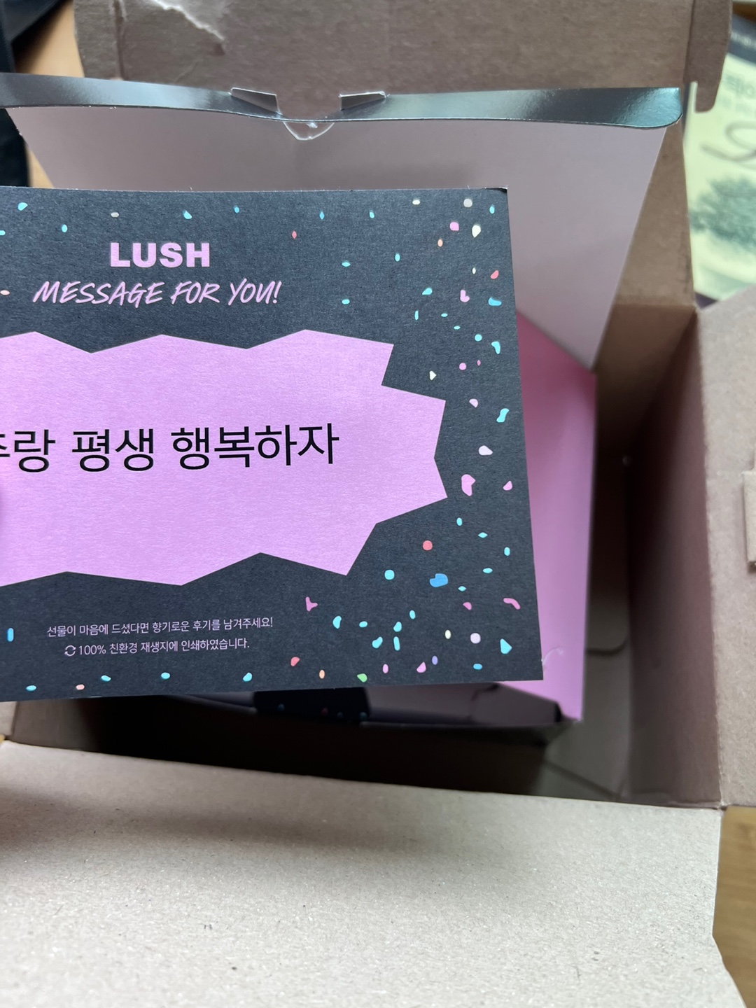 러쉬는 환경을 생각하는 기업이라서 포장지도 환경에 친화적인포장으로 왔습니다.